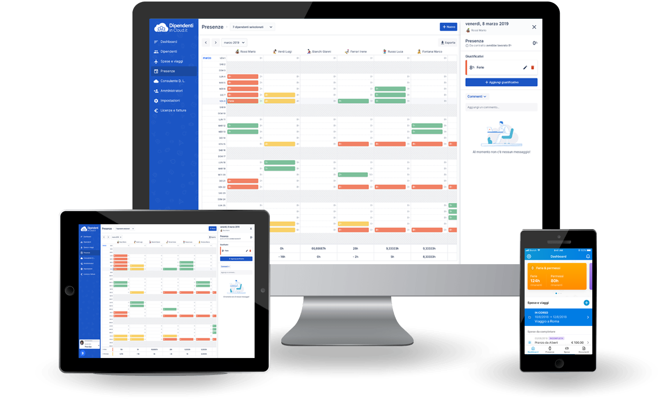 Gestisci le risorse umane da qualsiasi dispositivo, anche da mobile, senza dover più fare affidamento a complessi fogli di calcolo. Hai tutto comodamente in Cloud e i tuoi dati sono al sicuro.