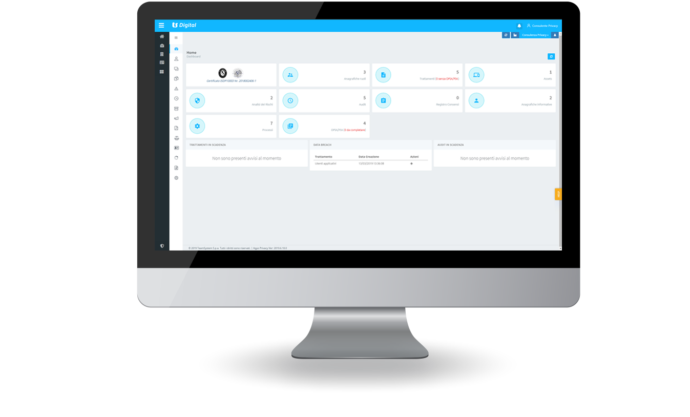 Monitori e correggi eventuali mancanze e sei compliant col GDPR. Gestisci in maniera sicura e puntuale le possibili violazioni dei dati